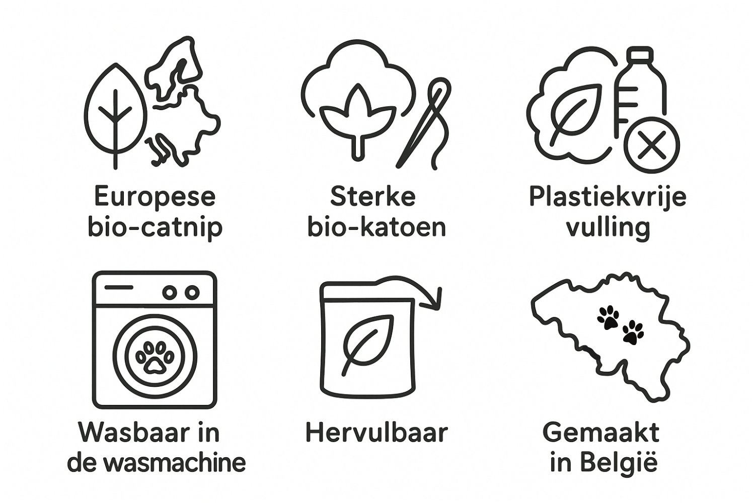 Kruiden: deze kan je zelf kiezen in de keuzebalk. Je kan kiezen tussen bio-kattenkruid, bio-valeriaan, een mix van bio-kattenkruid en bio-valeriaan of matatabipoeder.