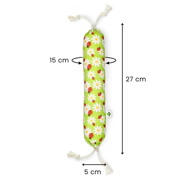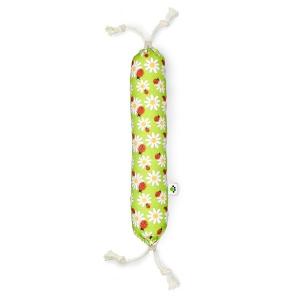 Laat de lente maar komen met dit vrolijke kattenspeeltje! Je kat kan de natuurlijke geur van de Europese bio-catnip kruiden opsnuiven en terwijl met de achterpoten flink stampen tegen het lange kattenspeeltje.