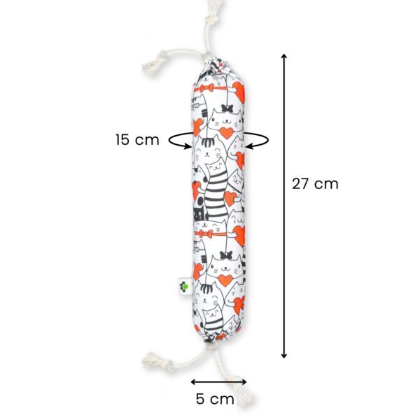 Deze kattenspeeltjes kunnen een klauwtje en tandje verdragen omdat ze gemaakt zijn van hele sterke bio-katoenen stof. Heb je toch een salontijger in huis die het kattenspeeltje binnen 48u aan flarden scheurt? Dan betaal ik het kattenspeeltje terug.